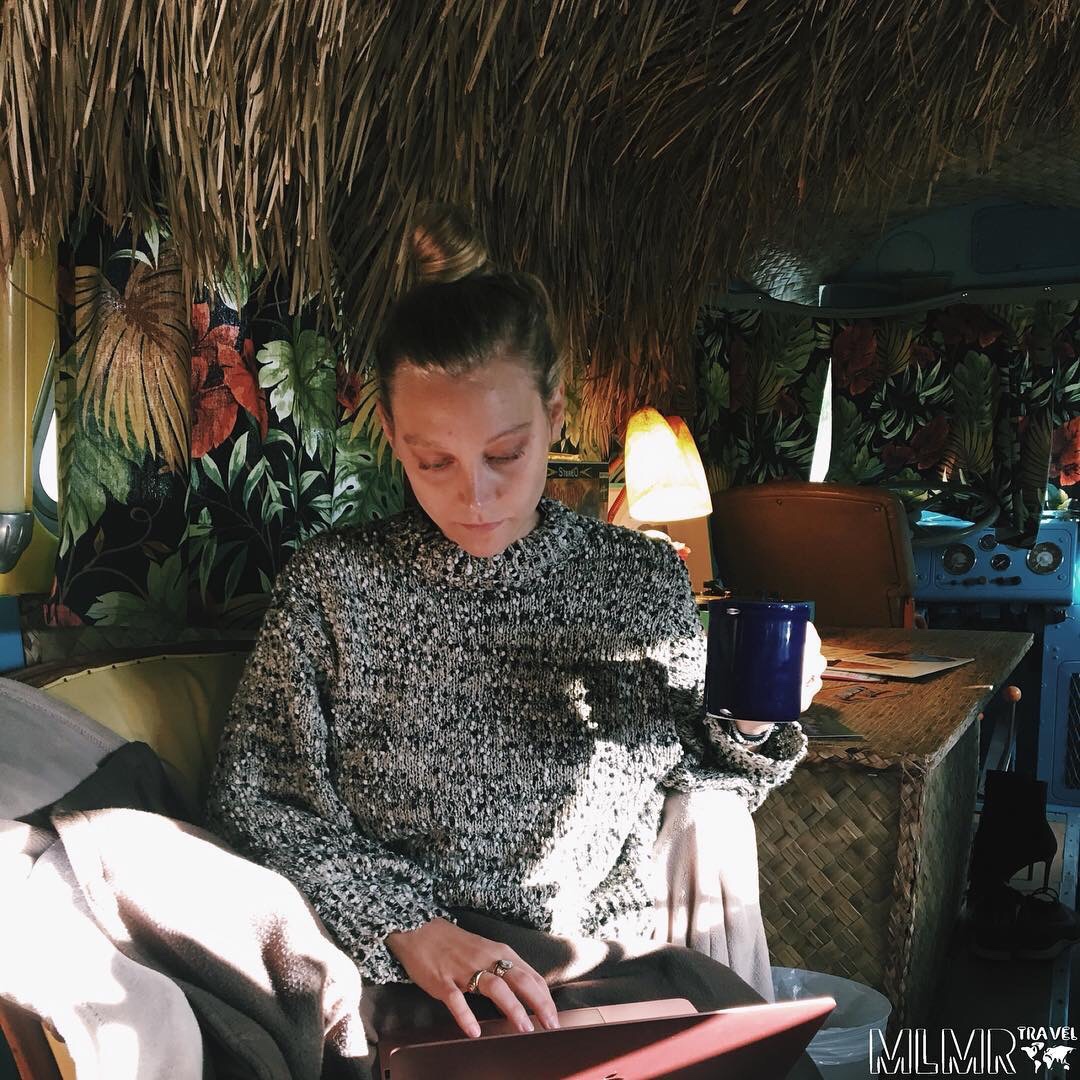 Kelsey working in the Tiki Bus